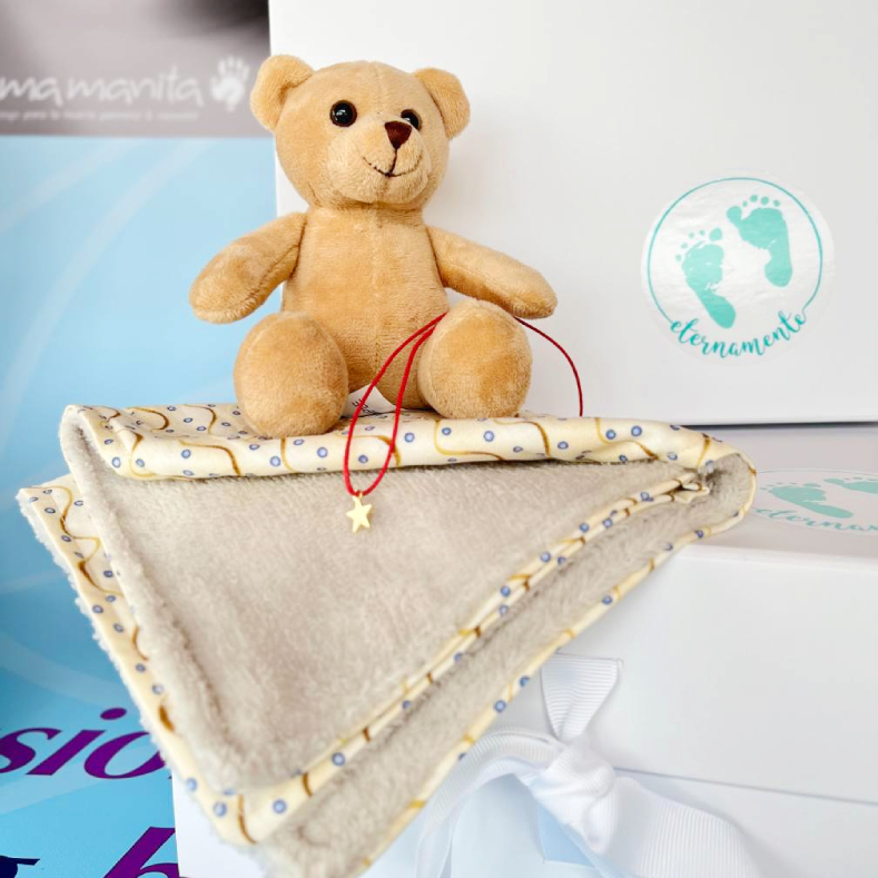 - Dos peluches pequeños que podrán acompañar al bebé mientras esté con su madre y padre; uno puede dejarse con el/la bebé y el otro puede llevarse a casa